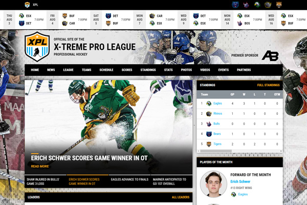 Designed for professional leagues. Comes with all the website features we have to offer including a wide variety of available widgets, fully customizable pages and many design settings to style your website the way you want.