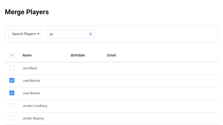 In the event a player accidentally is created more than once you can merge duplicate players to combine career stats.