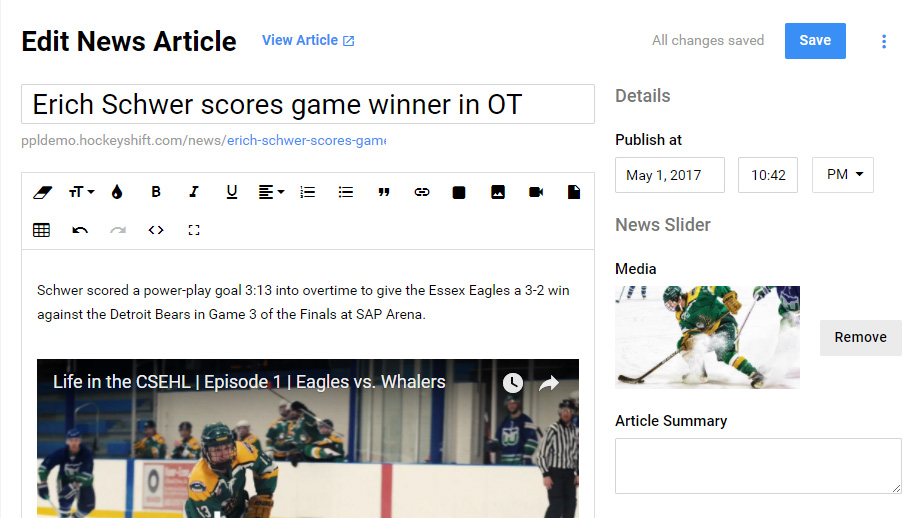 Post news articles with ease. Enhance your article with a featured photo or video.